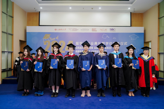 学位授予仪式上,单彦广宣读毕业生名单。中英双方院校领导为毕业生逐一拨穗正冠、握手勉励,并与毕业生合影留念。学术导师和专业负责人为毕业生颁发证书。