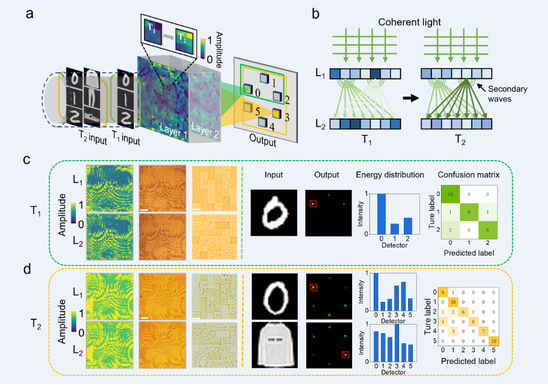 以ChatGPT为代表的人工智能浪潮正在席卷全球,对基于冯·诺依曼架构的电子计算机芯片算力和能耗提出了严峻的挑战。光子芯片利用光子代替电子进行光计算,具有速度快、能耗低、带宽高等优势,是人工智能技术可持续发展的重要驱动力。近年来,基于光学数字化全息技术的衍射神经网络由于具有高并行性、高集成度和高算力的优势,成为光计算的一个重要平台,是实现类脑存算一体化芯片的重要技术路径。然而当前的光学衍射神经网络硬件难以调谐,尤其不具备时域可调谐特性,无法直接实现存算一体化。