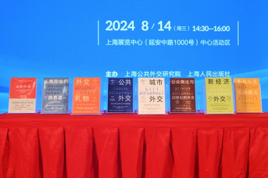 8月14日,在2024上海书展首日,研究院联合上海人民出版社在上海展览中心中心活动区举办了“公共外交连四海 法治中国砥砺行——‘公共外交译丛’、《法治中国:从上海世博会到进博会的探索实践》新书发布会”。由上海公共外交研究院策划的国内首套“公共外交译丛”的最新译著《人类社会的跨界者》《外交礼物:50件礼物中的历史》和全国政协常委、上海公共外交协会会长、上海公共外交研究院理事长周汉民主编的《法治中国:从上海世博会到进博会的探索实践》集体亮相。