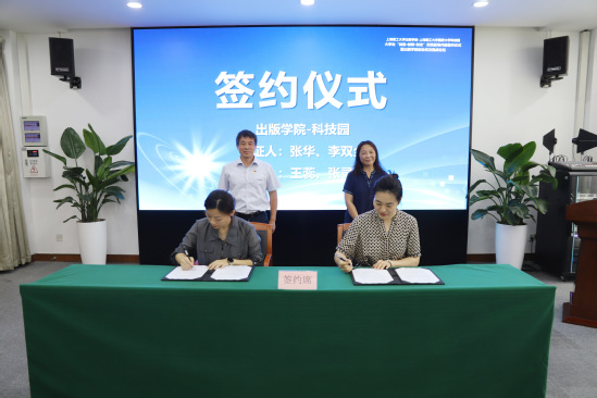 签约仪式上,出版学院与科技园、入驻学生创业项目与科技园分别签署共建合作协议书,张华、李双全共同为大学生“创意·创新·创业”实践基地揭牌。双方就加强校企合作,大力开展产教融合,整合多方资源联合开展人才培养,进一步开拓就业创业市场,提高毕业生就业创业质量等进行了深入的沟通和交流。