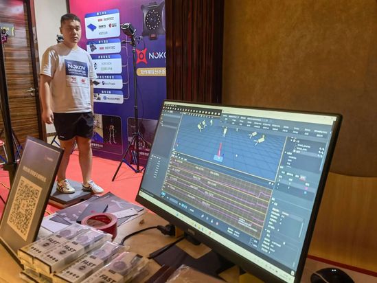 “其实比起游戏,动捕技术在康复领域有着更广大的应用前景。”为《黑神话:悟空》提供动捕技术的企业,此次也带着他们的动作捕捉分析系统来到现场。度量科技华东区总经理迟昊介绍,企业带来的一套光学三维动作捕捉系统,采用高性能红外摄像头捕捉反光标识点,采集并生成精准、实时的动作信息,可广泛应用于运动康复、机器人、无人机、机械仿生、虚拟现实、模拟训练、医疗整形、军事军工、电影动画、游戏制作等领域。“我们是康复设备研发的重要一环,为康复机器人厂家提供大量的基础数据支持。他们可以拿我们的数据进行二次开发。”