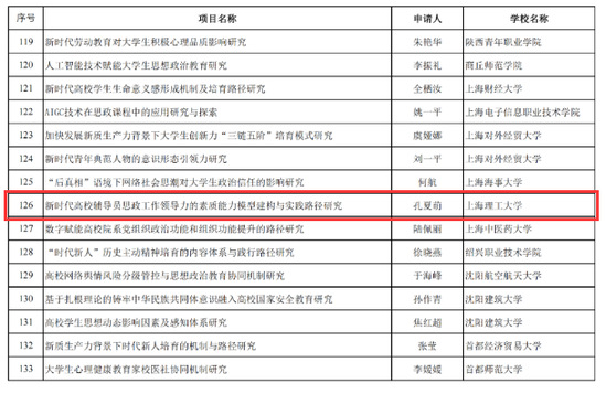近日,教育部社科司公布2024年度教育部人文社科研究一般项目评审结果,健康学院党委副书记孔夏萌申报项目《新时代高校辅导员思政工作领导力的素质能力模型建构与实践路径研究》获批2024年度教育部人文社会科学研究专项任务(高校辅导员研究)立项。