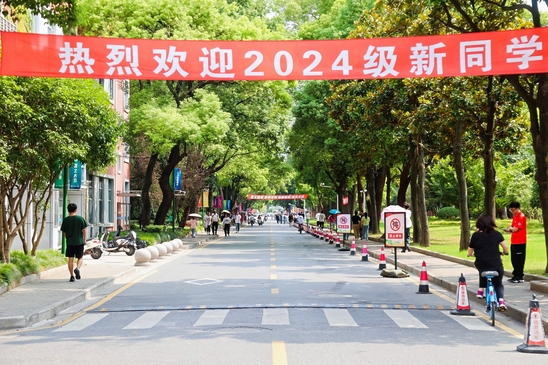 除了担任“接驳员”,志愿者们还是移动的“校园指南针”,随时随地为新生及家长指路。“食堂怎么走”“军训服在哪领”“空调卡在哪充值”……来自出版学院的大三志愿者方玉,都耐心给出了解答。纵然帽子已被汗水浸湿,任凭烈阳如何发力,光电学院杜誉始终坚守在志愿服务第一线:“我来做志愿不仅是想为迎新工作尽一份力,更多的是希望新同学少走弯路。”在刚开始的两个小时里,杜誉就已帮助了5位同学搬运行李。
