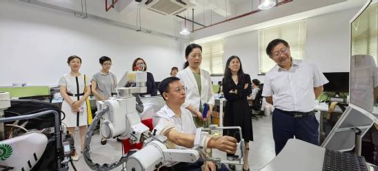 9月4日上午,上海市民政局局长蒋蕊、残疾人福利处处长孙晓红、老龄工作处副处长刘慧娟一行到永利官网访问,参观调研智能康复工程研究院及上海康复器械工程技术研究中心。副校长张华热情接待了蒋蕊一行,健康学院党委书记姚秀雯、智能康复工程研究院院长喻洪流及团队相关教师陪同会见。