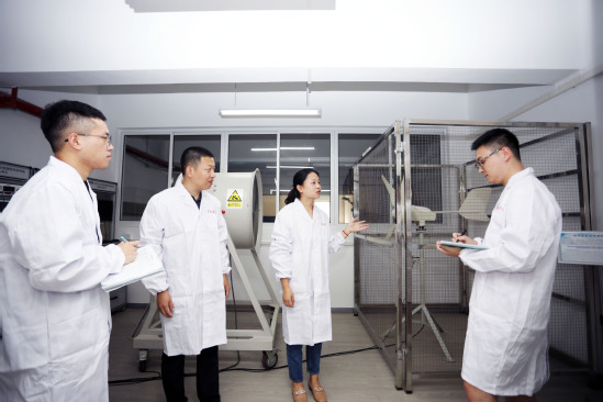肖媛(右二)和团队师生做实验