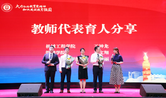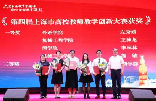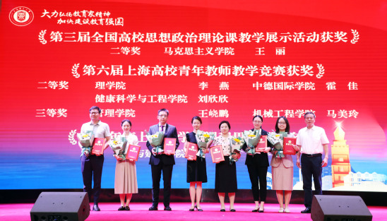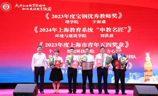 活动第二篇章伊始,《师者如光,微以致远》视频带领大家感受了上理教师身上熠熠生光的教育家精神。会上,校领导先后为“同学心目中的好老师”、国家级重大科创赛事优秀指导教师、上海市级各项教学竞赛获奖教师以及荣获“宝钢优秀教师”、上海教育系统“申教名匠”、“上海市青年五四奖章”、“上海市辅导员年度人物”等荣誉的教师颁奖。随后,王神龙、李文翔和王丽作为获奖教师代表分享了他们的育人故事。