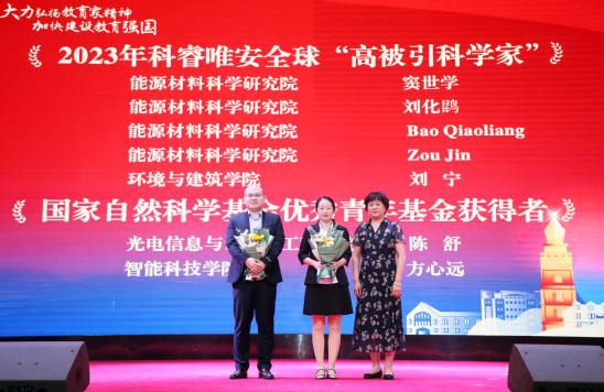 校党委常委、组织部部长孙红为2023年科睿唯安全球“高被引科学家”、国家自然科学基金优秀青年基金获奖教师代表颁奖