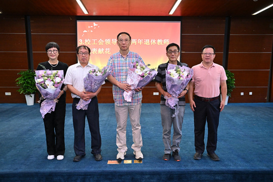 校工会常务副主席黄志强则代表工会向学院近两年退休教职工代表献花,感谢他们为院校发展做出的贡献,欢迎他们继续为学校和学院的发展献言献策,关心、指导、帮助学院青年教师、学生的成长和发展。