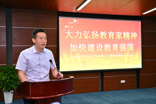 评选感动机械人物是今年机械工程学院推进师德师风建设,树立先进典型的重要举措,积极践行以教师为本的理念,大力弘扬教育家精神,推进教育强国建设,9月9日下午,学院举行第40个教师节暨教职工表彰大会,庆祝教育工作者共同的节日。校党委副书记、纪委书记赵宁出席,学校党委教师工作部、校工会、教务处等相关部门负责人应邀参加。表彰大会由机械学院党委书记刘德强主持。