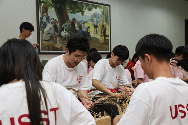 系、搓、编、压,在专业老师的指导下,师生们学习编织红军草鞋,稻草在同学们手中逐渐变成了结实的草鞋。“记得在革命电影中,红军战士们正是穿着这样的草鞋,一步步踏过了泥泞的沼泽,翻越了皑皑的雪山。”一位同学一边搓着稻草一边感慨道,“红军草鞋既不好编,更不好穿,不防水也不防寒。想象着红军战士们穿着这样的草鞋走过万里长征,我才真正体会到了长征路上的艰难与伟大。这不仅仅是一双鞋,它承载着红军战士们坚定的信念和不屈不挠的精神。”