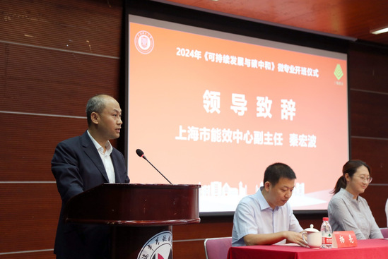 秦宏波在致辞中表示,上海市能效中心长期致力于绿色低碳政策标准研究和推进,经常与高校开展交流合作,通过合作筛选高校在绿色低碳领域的最新研究成果,并搭建平台支持高校的研究成果实现产业化,也通过合作给予学生机会参与绿色低碳领域的实践。他希望借由微专业建设的契机,与学校在绿色低碳领域人才培养等方面开展更多深入合作,弥补本市绿色低碳产业发展对复合型人才需求的缺口。