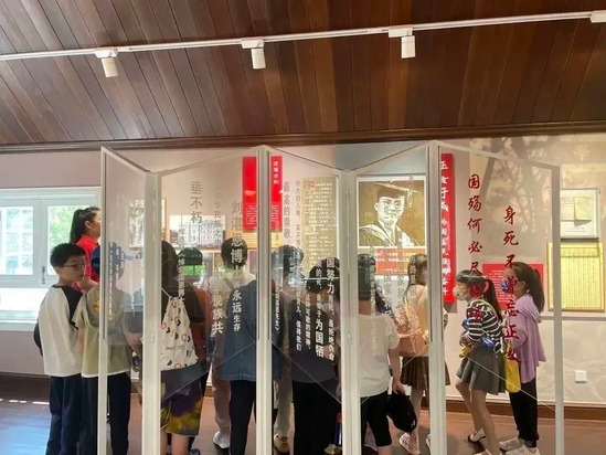 活动第一站,大家来到上海市爱国主义教育基地刘湛恩故居,讲解员耐心地为孩子们讲述刘湛恩校长的事迹,带领大家参观“热血铸丰碑”“丹心向春晖”红色文化主题展,感受刘湛恩校长追求卓著、锐意革新的精神气概,以及如何积极探索教育救国之道的精神力量。