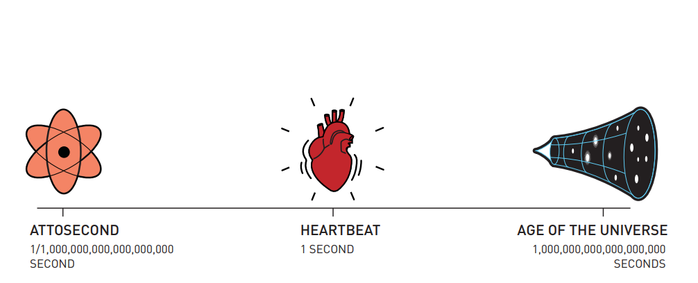 一秒钟内的阿秒数与138亿年前宇宙诞生以来所经过的秒数相同。图:Johan Jarnestad