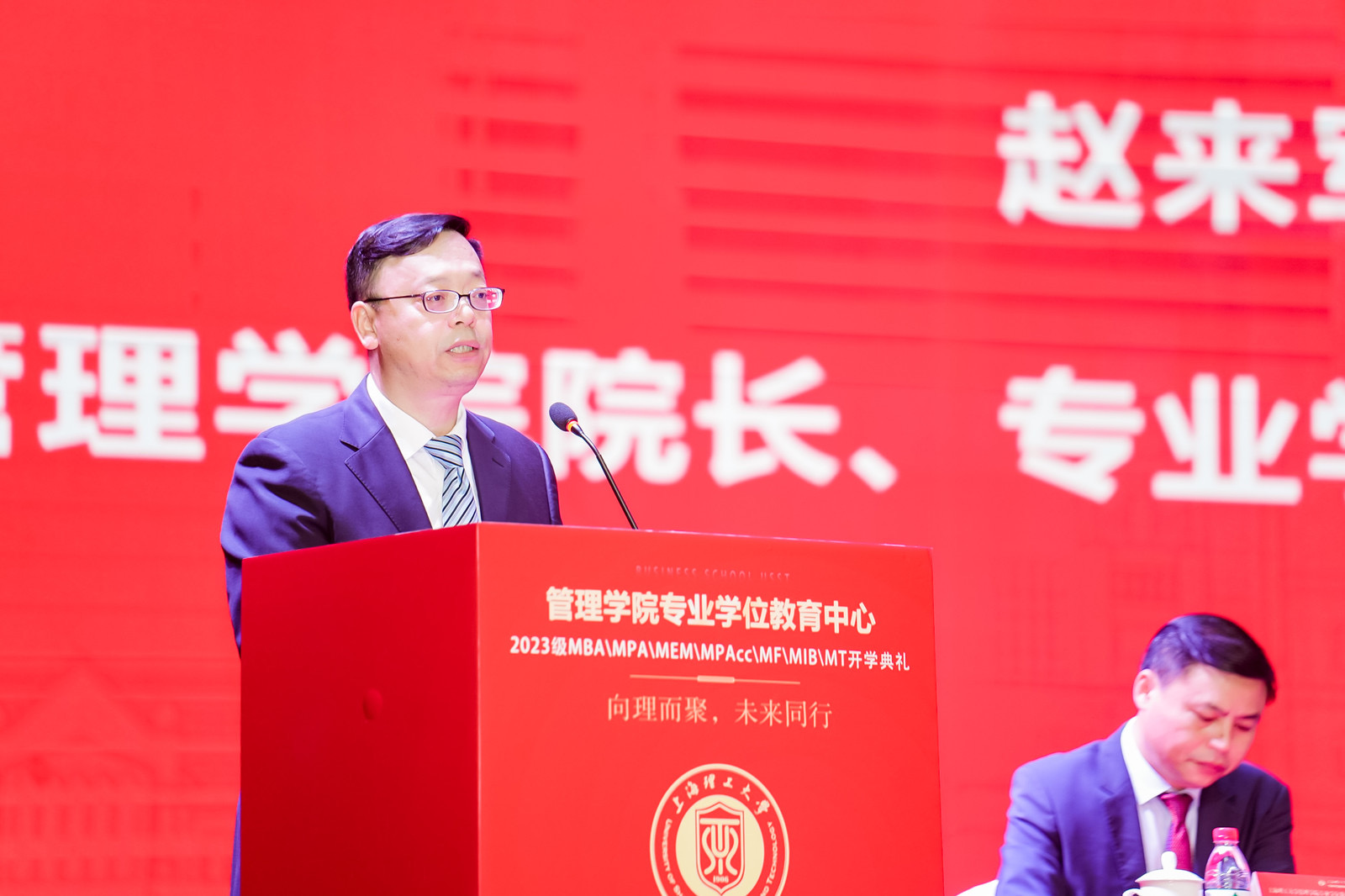 9月3日下午,永利集团304am官方入口管理学院专业学位教育中心举办2023级研究生开学典礼。校党委副书记、副校长盛春,研究生院常务副院长崔国民,管理学院院长、专业学位教育中心主任赵来军,管理学院党委书记马静波,管理学院副院长、专业学位教育中心副主任张峥,管理学院副院长何建佳,管理学院党委副书记蒲莹莹,以及中心各项目主任、教师代表、574名新生共聚一堂,开启上理学习生涯新篇章。活动由张峥主持。