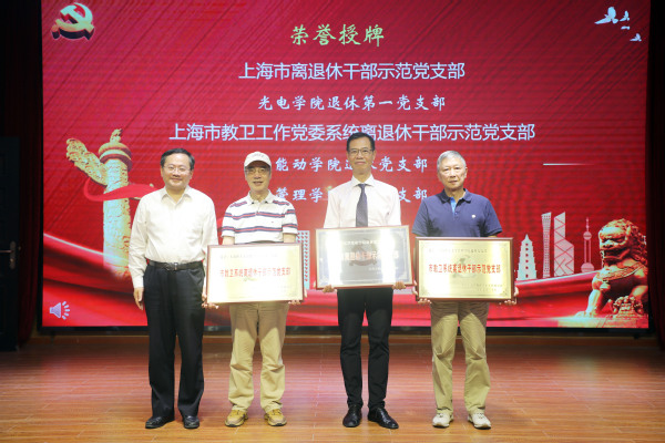 朱新远为市级和教卫系统离退休干部示范党支部书记转授奖牌