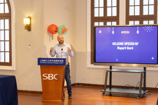 首先,由Rupert Ward致欢迎辞。他代表学院对留学生新生的加入表示热烈欢迎,并指出,本次活动主题以中国传统节日中秋节为背景,为留学生开启了学习和了解中华优秀传统文化的宝贵窗口,与学院的“文化同理”育人理念相契合。他鼓励留学生们在接下来的学习生活中,积极融入这个充满多样性与创新精神的校园环境,在中英国际学院的多元文化中不断进步成长。