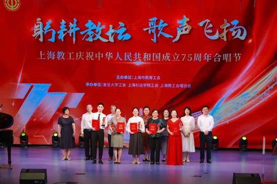 9月28日下午,由上海市教育工会主办的“躬耕教坛 歌声飞扬”庆祝中华人民共和国成立75周年合唱节圆满落幕。来自全市各高校、各区教育工会的38家单位、43支参赛队伍与3支展演队伍,近2000名教职工齐聚一堂,歌唱伟大祖国。
