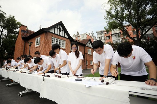 9月30日上午,学校第十一个烈士纪念日主题活动在刘湛恩烈士故居红色文化主题馆举行,档案馆肖琳琳老师带领师生跨越时间的鸿沟,追忆激情燃烧的岁月,接受革命精神的洗礼。“请党放心、强国有我,传承遗志、吾辈自强……”全体师生共同诵读诗歌《英雄》,在宣誓中缅怀革命先烈、赓续红色血脉、汲取奋进力量。活动现场,师生们用笔墨绘英烈,用书法寄哀思,通过开展书法创作和展示,缅怀用生命书写历史的革命先烈,继承发扬先烈们留下的宝贵精神。大家坚定信念、饱含深情、一笔一划地写下李大钊、邓恩铭等革命烈士的诗词作品,在字里行间深切感受革命先烈们大义凛然的无畏精神。
