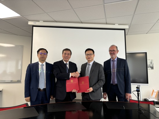 代表团首站抵达欧洲高等商学院,受到了国际关系部主任Marina Lecomte及大数据与商业分析系主任周炜教授的热烈欢迎。盛春与Marina Lecomte就商科教育、学生培养及师生互访等议题进行了深入探讨,并正式向周炜教授颁发了客座教授聘书。代表团还参观了校园设施,与学生和教师就课程质量、学习生活费用及未来发展等话题进行了友好交流。