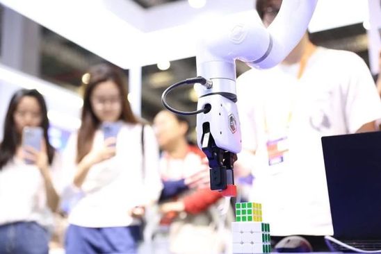 在上海师范大学展位,一款基于肌电信号的机械臂实时控制系统引发了众多参观者的兴趣。只见工作人员手部套上特殊装置,就能实时“指挥”机械臂前后左右移动,并且精准抓取、放置各类物品。据介绍,这款基于表面肌电信号的手势识别技术可使用户通过自然的肌肉活动来操控设备,而无需依赖传统的物理界面,可以实现人体意图与机械臂动作的实时同步,不仅可作用于病患康复过程,还可在复杂的环境,如深海、无氧、战地环境中实施精准任务。
