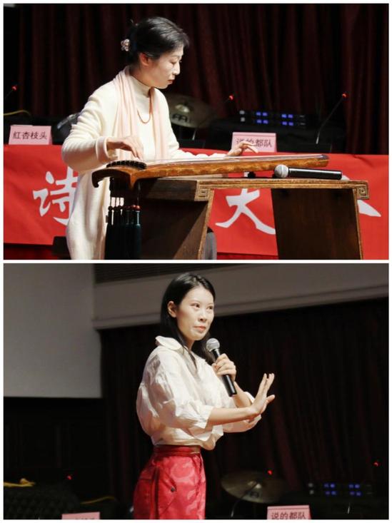 在节目表演环节,无锡市梦溪梅庵派古琴艺术传习所理事长、古琴梅庵派第四代传人巢锡兰老师为师生挥弦演奏了中国古琴名曲《秋江夜泊》。中英国际学院杨晟潇同学带来了京剧新经典《梨花颂》的精彩演唱。