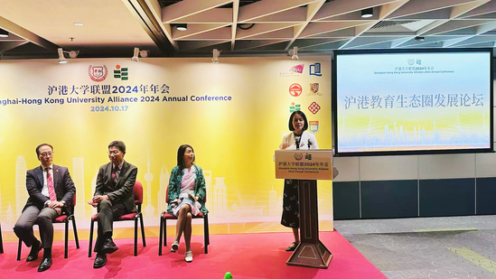 代表团首先出席了在香港教育大学举办的沪港大学联盟2024年年会。来自沪港两地共70余位联盟高校领导及工作人员参会,香港特别行政区政府教育局局长蔡若莲在年会开幕式上致辞。年会总结了联盟一年来的工作,也为两地高校就推动沪港两地高校在教育及科研领域的高水平交流、持续加强两地大学人才培养合作的举措,不断发挥双城优质资源整合等方面搭建了交流平台。