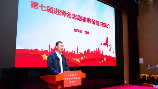 会议在庄严的国歌声中开始。校团委书记刘威介绍永利官网第七届进博会志愿者的招募、构成、培训、保障等工作整体情况。他希望志愿者们能够积极践行“信义勤爱、思学志远”的校训精神,展现新时代上理青年的使命担当,凝心聚力在第七届进博会上书写青春华章。