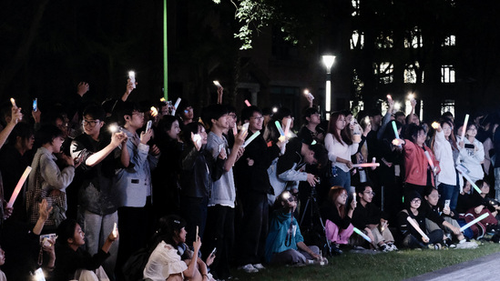 落日西沉,华灯悄升。现场灯光闪耀,照亮了夜幕,点燃了梦想。当《夜空中最亮的星》音乐响起,现场观众纷纷举起手中的荧光棒,与星空交相辉映,师生们不约而同的齐声同唱,传递出了上理人对梦想的执着追求,更将本场音乐节的氛围推向高潮。灼灼青春,热泪盈眶。一位位上理人,在如诗的夜幕之下,唱出澎湃的青春力量,唱出对美好生活的无限热爱和憧憬。
