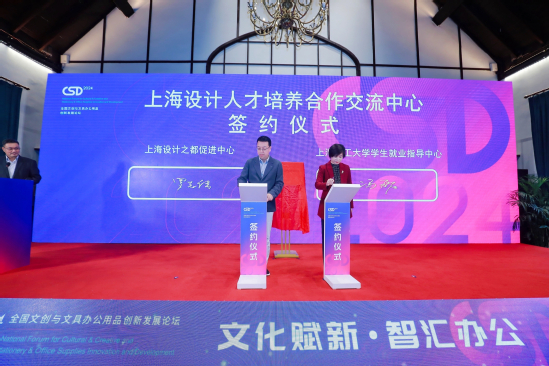 活动中,刘宁、朱新远、张展、虞国方共同启动2025 CSD全国文创与文具办公用品创新设计大赛;上理工与上海设计之都促进中心正式签约“上海设计人才培养合作交流中心”;上理工出版学院聘任中国文具办公用品行业企业代表作为校企协同创新设计工作坊“行业导师”。