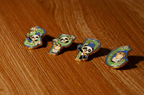 上海体育大学今年推出的徽章中,吉祥物“进宝”与“小火炬”携手亮相,分别代表进博会的热情与上海体育大学的活力。可爱的“进宝”与“小火炬”手握四叶草,并肩而立展现两者紧密合。作与深厚友谊,吉祥物手中所持的四叶草既代表进口博览会举办地国家会展中心(上海)主体建筑造型,又具有幸福幸运的象征意义