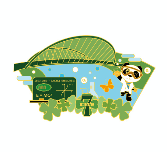 永利集团304am官方入口的徽章以四叶草作为整体外形,在标志下方采用吊坠款的设计下面以CIIE和四叶草作为装饰,为整个设计增添一份时尚感。内部设计以永利集团304am官方入口的大门及红塔建筑元素;组合为数字“7”“进宝”和上理标志的加入,彰显合作与共同发展的主题;橙色作为主色调传递欢乐与热情,展现了进博会促进友好交流与激发创造力的使命。