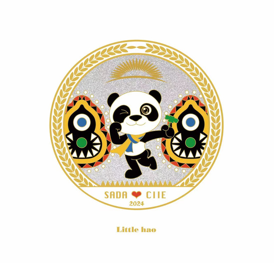 近年来,上海工艺美术职业学院持续发挥办学优势,以实际行动擦亮“沪滇协作,美育助力”的工美品牌深入澜沧拉祜族自治县,挖掘民族传统文化元素,赋能乡村振兴。其中,拉祜族是被称为“从葫芦里走出的民族”,把葫芦视为圣物。本次徽章灵感基于对拉祜族传统纹样的研究,将拉祜族葫芦纹样元素进行重新设计与转换,形成有节奏有韵律的新形态。配色选择拉祜族标志性色彩黑、红、黄等。银色背景,呼应拉祜族擅长利用的银泡制品,代表永恒和繁荣。徽章两侧采用丰硕的麦穗元素,寓意丰收,将两条麦穗连在一起,也代表进博会与上工美携手并进。