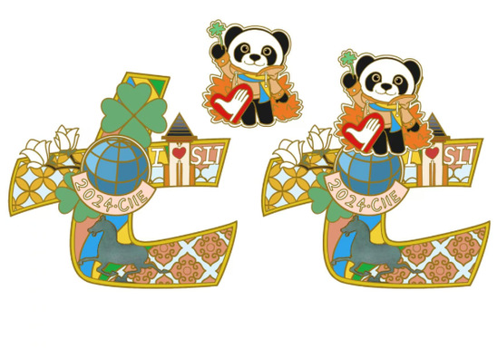 上海财经大学的徽章套组包含了三款徽章,分别为“进宝”、财宝和象征第七届上财与进博的logo款。进宝款徽章底部的祥云托起了整个图样,代表对美好事物的希冀与向往,也寓意了进博会是展示中外美好事物的平台。财宝款徽章海浪穿梭在图样中,连接所有元素,寓意着进博会连同海外,表达了永不停歇、坚持不懈的开放精神与热情。logo款回归简约风格,以SUFE CIIE、国家会展中心剪影、和数字7组成,以红金配色祝愿上财“小叶子”圆满完成第七届进博会的志愿任务,发挥上财青年的青春力量。