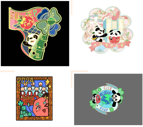 第七届进博会同济青年志愿者徽章,含4款特色徽章、1款经典徽章,以“百花‘七’放,斑斓四‘济’”为核心理念,将同济大学的学科特色、多元文化建筑风采等融入方寸之间。徽章融合校园地标式建筑“同济经典”映入眼帘,以四季更迭为序,呈现校园不同时节的美好。“进宝”也被迎进了同济校园,与同济青年们一同感受理、工、医、文、法等同济学科的无限魅力。