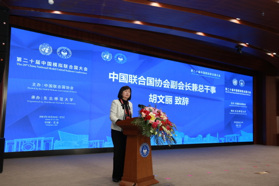 24日开幕式上,联协副会长兼总干事胡文丽、外交部国际司参赞陈凯、东北师范大学党委副书记、校长徐海阳出席开幕式并致辞。联合国秘书长古特雷斯向本届大会发来贺信和视频贺辞。胡文丽副会长兼总干事表示,作为世界上最具普遍性、代表性、权威性的政府间国际组织,联合国在过去70多年里为维护世界和平、促进共同发展发挥了不可或缺的重要作用。近年来,国际局势动荡不安,全球性挑战层出不穷,迫切需要加强全球合作、完善全球治理。模拟联合国是青年感知体验联合国等国际组织的实践平台,希望大家饱含爱国之情、赤子之心,努力学习知识、增长见识,掌握规则、锻炼才干,不负韶华、不负时代,为全面推进中国式现代化、推动构建人类命运共同体贡献青春力量。
