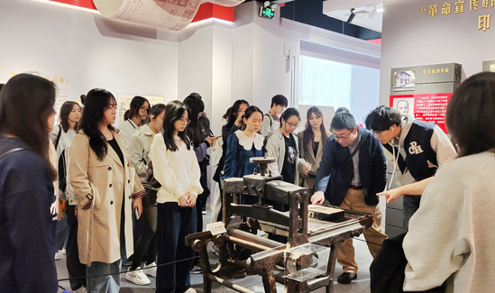“印刷品作为媒介的一种,对推动我国文化交流与思想进步具有积极作用,商务印书馆的历史是值得我们中国人了解和铭记的历史。”一位大一的同学在参观后说道。活动中,出版学院师生参与雕版印刷体验活动, 并参观“一本书的诞生”主题工业展项目。
