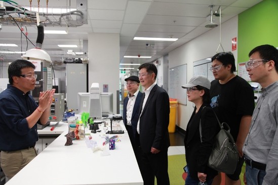会后,代表团在伍伦贡大学超导与电子材料研究所所长Xiaolin Wang教授、Cheng Zhengxiang教授以及智能聚合物材料研究所副所长Jun Chen教授等人陪同下参观了澳大利亚创新材料研究中心(AIIM)。参观交流中,双方就研究生联合培养、国际联合实验室建设、人才项目实施等方面进行了深入沟通,就进一步合作的项目内容初步达成了一致。