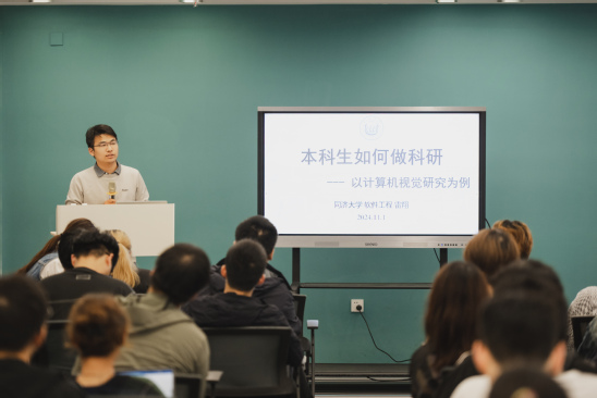 第二场沙龙于11月1日举办,由“挑战杯”上海市级金奖项目成员、来自同济大学的雷翔主讲。雷翔以本科生参与科学研究的角度切入,从理论到实践、从方法到执行,分享了自己的科研经历和参赛经验,为学生们展示了计算机视觉领域的最新研究成果和发展趋势。他也详细剖析了自己科研项目的选题、实验设计、数据分析和论文撰写等关键环节,分享了专业技术提升和文献检索等干货,以及习惯培养、时间管理、软件自学等方面的心得体会和宝贵经验。雷翔告诉同学们“一定不要给自己设限,机会是留给有准备的人!”鼓励大家勇于尝试,发挥大学生的主观能动性。此次沙龙不仅激发了学生们对计算机视觉研究的兴趣,也为他们未来的科研工作提供了有益的指导和借鉴。