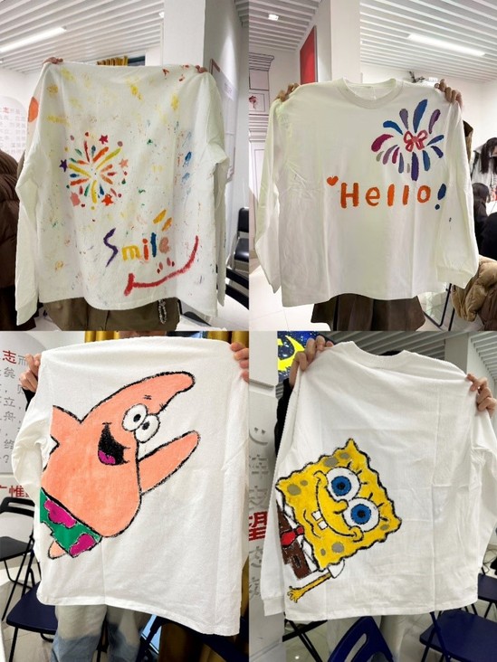 活动现场热闹非凡,同学们以宿舍为单位,围绕生态美育、校本文化、传统文化、个性创意、温馨生活等多方面,在文化衫上展开了一场创意的狂欢。一件件独具一格的DIY卫衣宛如一扇扇展示宿舍风采的窗口,呈现出宿舍独特的生活风气和温馨满溢的人文关怀,将同学们的个性才华与青春活力展现得淋漓尽致。同学们把对生活的热爱,通过色彩与图案这两把神奇的“钥匙”,完美地融合在文化衫上。