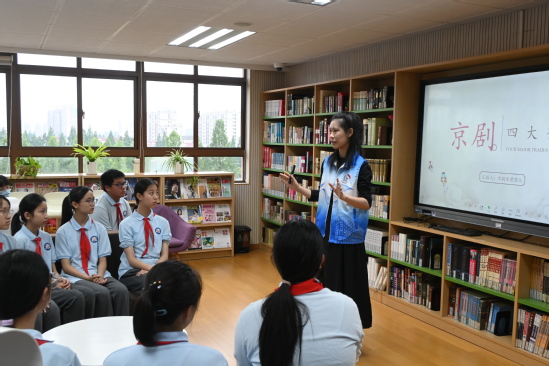 杨晟潇给上理附中的同学们讲授京剧知识