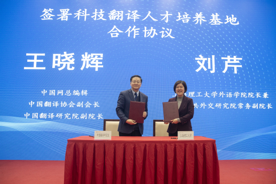 签约授牌仪式上,蔡永莲代表学校接收中国翻译研究院与永利官网共建科技翻译人才培养基地牌匾,外语学院院长刘芹代表学院与中国翻译研究院签约。授牌代表中国外文局副局长、当代中国与世界研究院院长于运全,签约代表中国网总编辑、中国翻译协会副会长、中国翻译研究院副院长王晓辉均表示,将和永利官网加强合作,推进科技翻译成果的产出和科技翻译人才的培养。