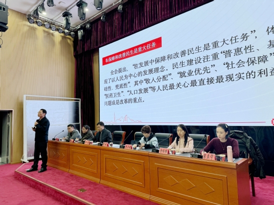 李琪教授结合自身作为改革开放的受惠者、参与者、共享者的切身体会,以“党的二十届三中全会的九大新观点新提法和七个聚焦”为主要内容分享如何全力以赴贯彻落实全会精神。李琪教授谈到,二十届三中全会明确提出了全面深化改革的总目标和完成时间,从改革开放到进一步全面深化改革,不是形式或词语上的增减损益,通过进一步全面深化改革推进中国式现代化以实现强国建设、民族复兴伟业的战略部署和举措,加强高质量发展、高水平开放、高效能治理、高品质生活、高水平安全的一体化推进和良性互动,聚焦突破体制机制的瓶颈问题,在体制机制上推进改革创新、破旧立新、推动发展。