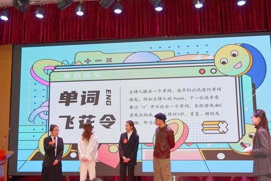 比赛期间还有两次互动环节:英文单词飞花令和符号猜猜猜。观众们热情积极参与游戏,参与者还获得了精美礼品,现场气氛异常热烈,互动频繁。