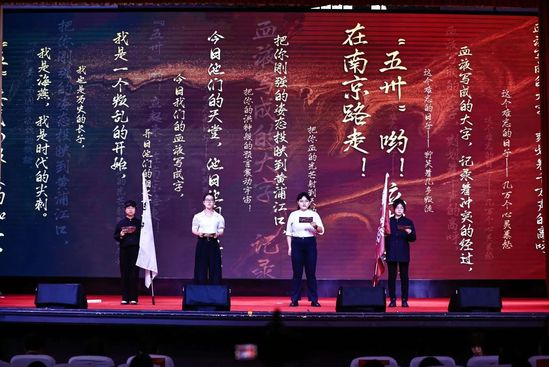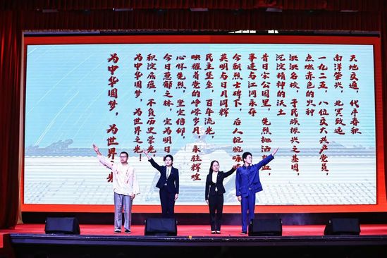 台上,同学们充分挖掘红色资源,以饱满的热情和精湛的演绎将一段段红色故事鲜活呈现。他们或慷慨激昂地朗诵革命诗篇,声音铿锵有力,直击人心,每字每句都像是从心底迸发出的呐喊;或深情款款地讲述英雄事迹,语调抑扬顿挫,引人入胜;或通过生动的情景剧,将革命场景再现于舞台,将革命先烈形象刻画得栩栩如生,让人仿佛置身于那段峥嵘岁月之中。