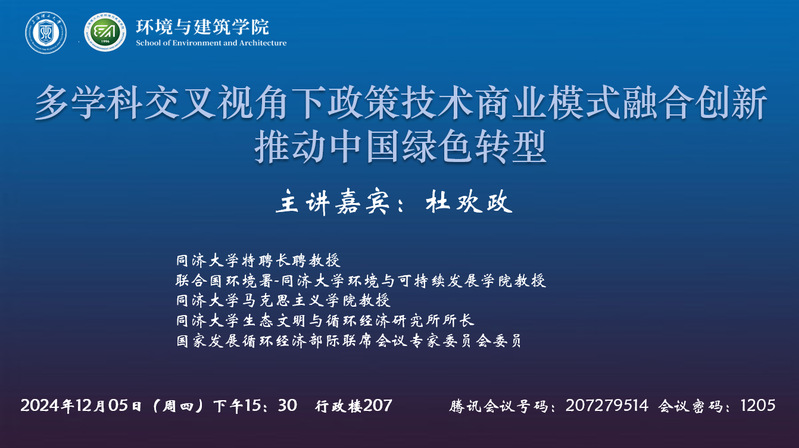 讲座主题:多学科交叉视角下政策技术商业模式融合创新推动中国绿色转型