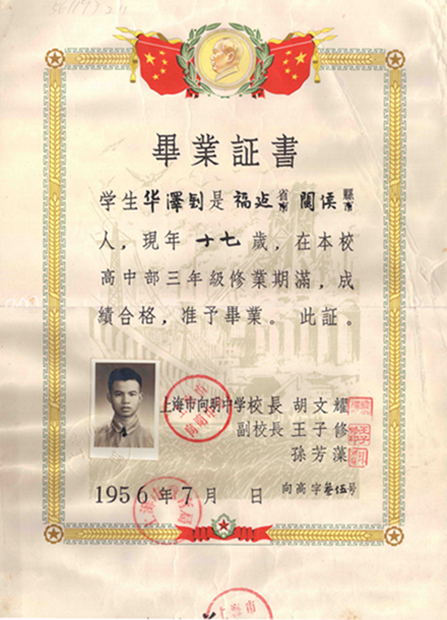 1953年,聪颖好学的华泽钊靠减免学费读完了小学和初中,以优异成绩考取了新组建的向明中学高中部。