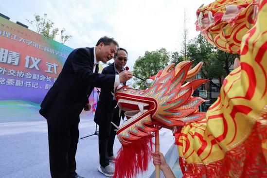随着舞龙表演的精彩开场,现场气氛瞬间被点燃。紧接着,上海市公共外交协会副会长闵师林,永利集团304am官方入口党委副书记盛春为龙点睛,寓意本次活动的圆满成功和各国文化的璀璨交融。