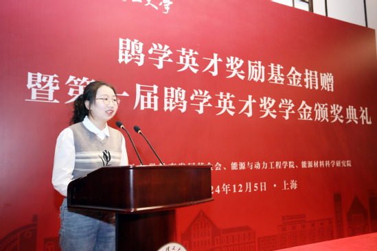 2023年10月,值学校117周年校庆之际,窦世学院士、刘化鹍院士捐赠100万元,设立鹍学英才奖励基金。今年,两位院士再次捐赠100万元,用于激励年轻一代学子自强自立、拼搏奋斗,为实现国家“双碳”战略、人类能源可持续发展作贡献。根据《鹍学英才奖励基金项目管理使用办法》,学院于2024年11月启动第一届鹍学英才奖学金评选,经学生申请,鹍学英才奖学金评审委员会审议,共选拔出鹍学新生奖4人,鹍学英才奖4人。2024级博士研究生许敏作为获奖代表发表感言,表达了对两位院士的感恩之情,以及在未来科研学习过程中继续深化专业知识、培养综合能力、服务社会发展的决心。