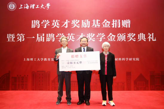 朱新远校长接受鹍学英才奖励基金捐赠