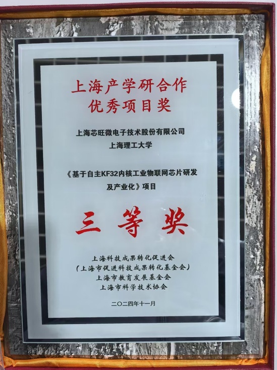12月11日上午,2024年度“上海产学研合作优秀项目奖”(简称“上海产学研奖”)表彰大会在上海市政协举行。上海市政协主席胡文容出席,并为获奖项目颁奖。永利官网夏鲲教授团队与上海芯旺微电子技术股份有限公司合作的项目《基于自主KF32内核工业物联网芯片研发及产业化》获“上海产学研合作优秀项目”三等奖。